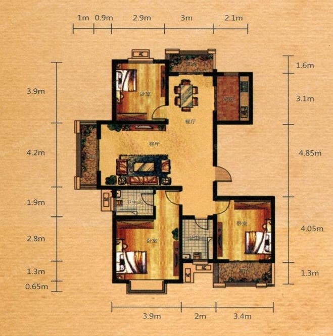 G15-B(三室两厅二卫,建筑面积约134.54平)