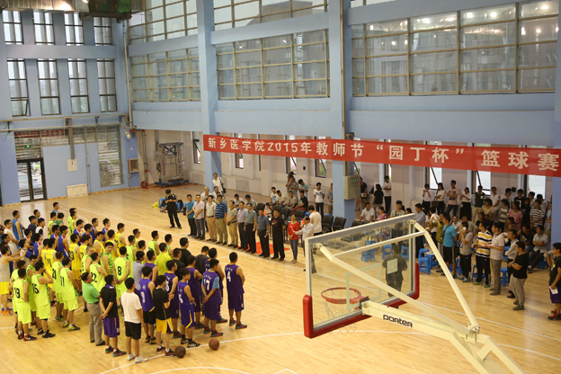 9月9日下午,新乡医学院2015年“园丁杯”教职工篮球赛在我院平原校区综合训练馆拉开序幕。新乡医学院党委副书记、工会主席陈兴华,新乡医学院本部领队基础医学院副书记任玉明,新乡医学院第一附属医院领队工会副主席郭健,新乡医学院第二附属医院领队工会主席石永立,新乡医学院第三附属医院领队工会副主席王冬波,新乡医学院第四附属医院领队工会副主席赵荣风,新乡医学院第五附属医院领队副院长晁阳,我院党委书记王志凯,院长杨捷,副院长王洪兴出席了开幕式。新乡医学院工会副主席杨晓林主持。 王志凯首先向各位领导、各兄弟单位代表团的到来表示欢迎。他表示,我院将不负众望,争取把本届比赛办成一次凝聚人心、增进友谊的喜庆盛会。 陈兴华致开幕辞并宣布比赛开幕。他希望比赛队员们能够秉持“友谊第一,比赛第二”的原则,赛出水平,赛出风采。 裁判员代表杨帆,运动员代表谢孟晨分别发言。 开幕式后,赛程正式开始。比赛哨声一响,队员们都迅速进入竞技状态,积极主动出击,以矫健熟练的动作迅速传球,直逼篮板。场上瞬间被你争我夺、你攻我守的气氛点燃,几位篮球健将更是飒爽英姿,投球动作帅气利落。各支球队在激烈地争夺中仍配合默契,其中三分投球、防守拦球、以及抢球罚球的场面更是将全场氛围领向高潮。现场掌声、喝彩声不断。 本次新乡医学院“园丁杯”教职工篮球赛由我院承办。比赛共有七个单位代表团参赛,参赛队员近百人,赛程将持续六天。
