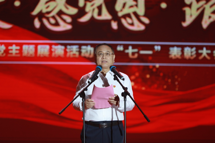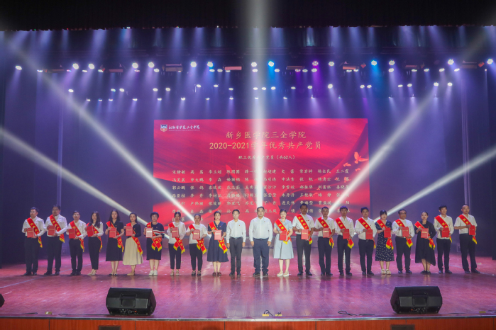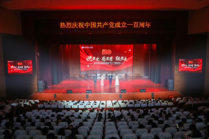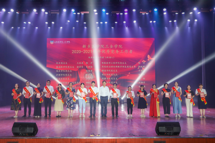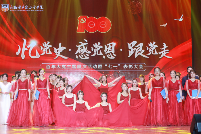 百年征程波澜壮阔,百年初心历久弥坚。为庆祝建党百年,讴歌党的丰功伟绩,发扬党的优良传统,树牢听党话、跟党走的坚定信念,7月1日下午,我校在平原校区闻德礼堂隆重举办“忆党史·感党恩·跟党走”百年大党主题展演活动暨“七一”表彰大会。党委书记杨捷、院长胡仕坤等全体校领导、教职员工及学生代表共聚一堂,观看演出。 精彩的视频宣传片《这百年》和《这十八年》拉开了整场晚会的序幕。《这百年》展现了中国共产党100年来带领全国人民矢志不渝、共谱辉煌华章的奋斗历程和伟大成就;《这十八年》展示了学校成立18年来,在校党委领导下,广大师生砥砺奋进,创造了中原高等医学教育的奇迹。 杨捷致辞。他指出,我们党从最初的50多名党员发展到今天的9500多万名党员;中国从一个军阀割据、被列强划出22块租界的积贫积弱国家变成全球第二大经济体,完成了消除绝对贫困的艰巨任务,实现了从站起来、富起来到强起来的伟大飞跃,以一往无前的奋斗姿态,向着实现第二个百年奋斗目标奋勇前进! 杨捷说,党的百年发展历程告诉我们,走得再远,都不能忘记来时的路,我们要通过深入学习党史正本清源、固本培元,不断接受思想洗礼,汲取精神力量;没有共产党,就没有新中国,就没有老百姓今天的美好生活。我们要时刻牢记,无论革命时期的英雄烈士,还是今天的时代榜样,都有一个共同的名字——共产党员;办好中国的事情,关键在党。我们要自觉坚持党的全面领导,旗帜鲜明地维护党中央权威和集中统一领导,把信党爱党为党落实到具体行动上。 杨捷强调,广大师生要紧密团结在以习近平同志为核心的党中央周围,自觉弘扬“坚持真理、坚守理想,践行初心、担当使命,不怕牺牲、英勇斗争,对党忠诚、不负人民”的伟大建党精神,继往开来,接续奋斗,全面落实立德树人根本任务,坚持办好人民满意的高等医学教育,奋力创造无愧于历史和人民的新业绩! 晚会立足百年来党的风雨历程和峥嵘岁月,以“忆党史·感党恩·跟党走”为主题,分为《开天辟地·建国大业》、《改天换地·兴国大业》、《翻天覆地·富国大业》、《惊天动地·强国大业》四个篇章。整场晚会内容丰富,形式新颖,用一个个精彩纷呈的节目为党的百年华诞送上最真挚的祝福。 在《声回历史歌百年》中,师生们用声音演绎了1919年因不平等条约的签订,三千多名莘莘学子心怀中华河山,吼出了回响大地的呐喊;《又见红船》展示了中国共产党用红船精神将华夏引向了繁荣昌盛;《伟大的祖国伟大的党》再现了新中国成立初期,党领导全国各族人民开展轰轰烈烈的社会主义改造与建设运动;情景剧《崛起》演绎了伟大祖国从百业废止到万物勃兴的燎原态势;《青春岁月》讲述了改革开放以来,基层群众用双手改变命运的决心和努力;《重生》展示汶川地震后,党委、政府把保护人民生命财产安全放在第一位,全力开展救援工作的场景;《追梦新时代》讴歌了党的十八大以来,以习近平同志为核心的党中央团结带领全党、全军、全国各族人民,以巨大的政治勇气和强烈的责任担当,开启了新时代中华民族伟大复兴中国梦的火热实践;《灯火里的中国》从“都市街巷”的灯影唱到灯火灿烂的中国梦,赞颂了新时代安宁祥和的幸福生活。 活动现场,学校对2020—2021学年优秀师生共产党员、优秀党务工作者及先进基层党组织进行了表彰。焦婉君等79人荣获了“学生优秀共产党员”荣誉称号;陈扬等62人荣获了“职工优秀共产党员”荣誉称号;王真真等18人荣获了“优秀党务工作者”荣誉称号;精诚书院党总支等4家单位荣获了“先进基层党组织”荣誉称号。与会领导为受表彰代表颁发奖牌和荣誉证书。 本次展演参与教职工450人左右,占教职工总人数的50%。活动结合党史学习教育,通过丰富多彩的舞台艺术回顾了党的百年光辉奋斗历程,激励引导全校广大党员干部师生从百年党史中汲取奋进智慧和伟大力量,为把我校建设成地方性、高水平、有特色、应用型的新型高等医学院校而不懈奋斗!(编辑:穆潇)