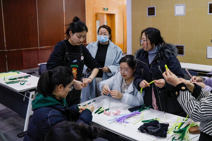 人间最美三月天,春花烂漫展新颜。为庆祝国际“三八”妇女节,3月8日下午,我校工会在行政楼三楼报告厅开展了“花点时间,绽放风华”主题活动,该活动作为学校2024年“巾帼展魅力,杨帆新征程”女神节庆三八系列活动之一,旨在丰富学校女职工的精神文化生活,让大家度过一个充实有趣的节日,学校70余名女职工参加。 活动开始前,指导老师详细讲解了扭扭棒的使用技巧和注意事项,并展示了扭扭棒花束的成品,清新可爱的扭扭棒花束顿时吸引了在场老师的注意,听说扭一扭就可以做出这些花朵,大家个个都跃跃欲试。一根根小小的扭扭棒,在不知不觉中,原本零散的材料,很快在老师们手里变成了一朵朵栩栩如生的郁金香,“你的郁金香,做的跟真的一样”、“你彩色的花骨朵也太好看了”每位参加活动的老师都互相称赞着,大家纷纷拿起手机来拍照,脸上的笑容像温暖的太阳一样,把花束都映照的更美丽了。 崇德书院辅导员教师魏欣珂表示,今天我不仅学会了手工制作扭扭花技巧,还能和姐妹们一起分享快乐,看着自己制作的永不凋谢、独一无二的灿烂花束,心里的成就感和幸福感满满。 此次活动不仅让女职工们体会到创作过程中的乐趣及得到成品后的满足感,也激发了大家年轻的心态和创造的潜能,祝愿大家在生活中绽放芳华、在工作中乘风破浪,杨帆新征程。(审核:杨翠苹、王德胜)