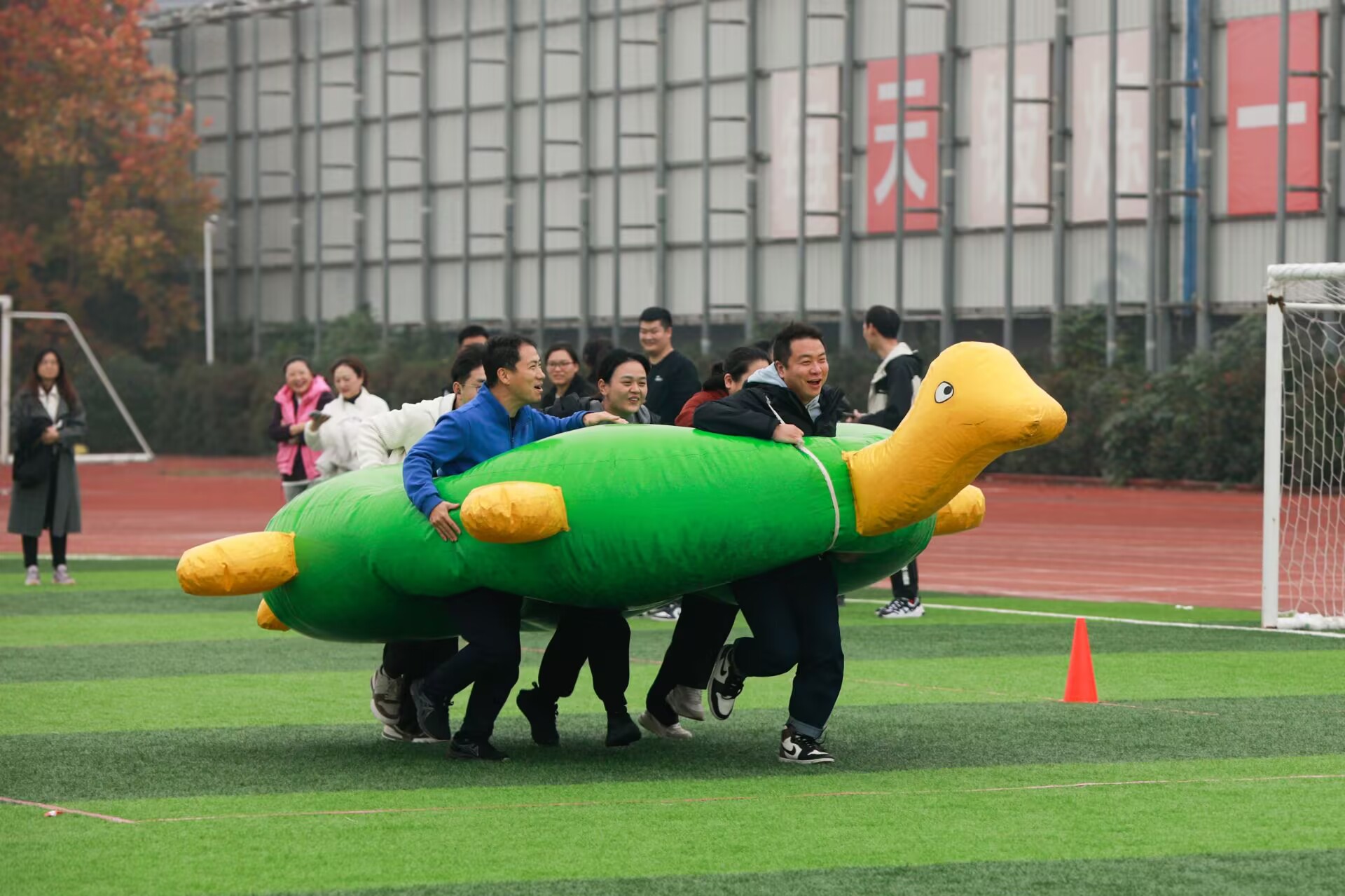 初冬暖阳似春华,青春运动正当时。为进一步丰富教职工业余文化生活,营造健康文明、积极向上的校园氛围,11月15日,我校第七届“家文化”活动之教职工趣味运动会在平原校区风雨操场举行。本次活动由校工会主办,精诚书院工会承办,全校近三百名教职工积极参加了本次活动。 本届运动会以“健康中国行·活力在校园”为主题,秉承团体性与趣味性相结合的原则,精心设置了“蛟龙出海”、“百足蜈蚣”、“龟兔赛跑”、“趣味套圈”、“模拟射箭”五个项目。从三尺讲台到运动赛场,教书育人的老师们摇身一变成为全力以赴的运动员。运动场上,色彩斑斓的 “蛟龙” 准备就绪,参赛的老师们摩拳擦掌、跃跃欲试。“百足蜈蚣” 项目不仅考验教职工们的体力和耐力,更考验着团队的协作能力。参加“龟兔赛跑”和“趣味套圈”项目的教职工笑语不断,仿佛回到了欢乐的童年时光。“模拟射箭”项目更是对专注力和团队合作能力的检阅。参赛的老师们齐心协力,奋勇争先,场下观战的老师出谋划策,加油助威,欢快的气氛席卷了整个操场,充分展现了我院教职工追求卓越、团结向上的精神风貌。 此次趣味运动会丰富了教职工的校园生活,促进了教职工之间的交流与合作,激励全体教职工以更加饱满的热情和更加团结的精神投身到工作和生活中,共绘学院高质量发展的新蓝图。(审核:韩丽王德胜)