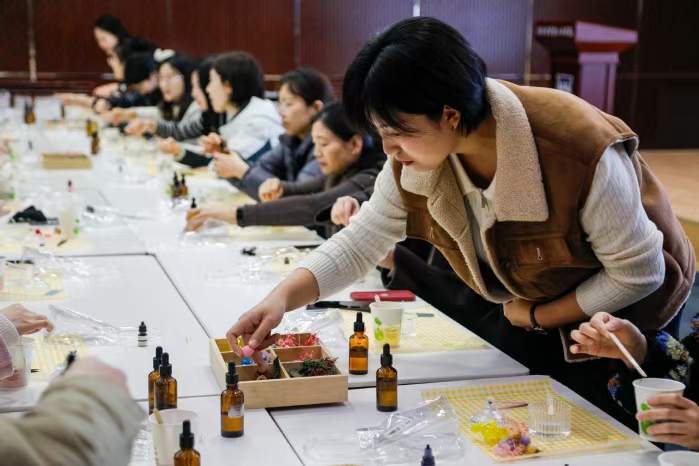 “平时忙于教学科研,难得静下心来体验手工的乐趣。亲手做一盏蜡烛,仿佛把春天的美好‘封存’进时光里。”崇德书院高老师捧着自己制作的樱花香薰烛台笑着说道。活动现场欢声笑语不断,馥郁芬芳中洋溢着温馨与喜悦。