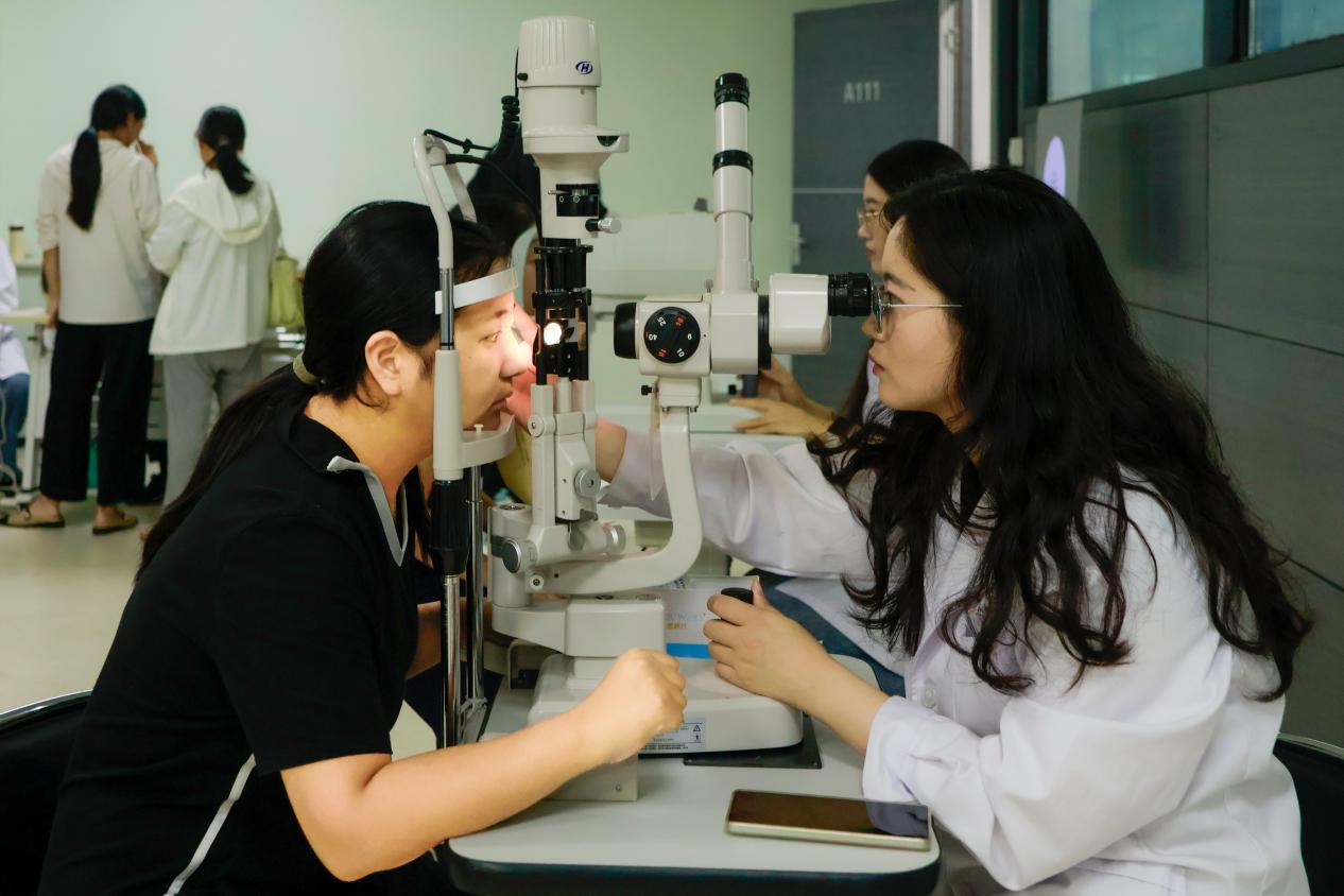 此次活动聚焦教职工眼部健康需求,围绕“专业检查、精细维护、专属福利”三大板块精准服务:在眼部检查环节,光明眼科学院专业教师团队依托先进仪器,为到场教职工开展眼表疾病排查、眼压测量、屈光状态检测等全维度评估,并针对教师群体高发的视疲劳问题,逐一提供个性化用眼指导;眼镜维护区域,工作人员细致清洗镜片污渍、调整镜架松紧、加固松动螺丝,让每一副眼镜恢复最佳佩戴体验;同时,校工会还为到场教职工送上节日鲜花与配镜专属优惠,将暖心关怀实实在在送到大家手中。