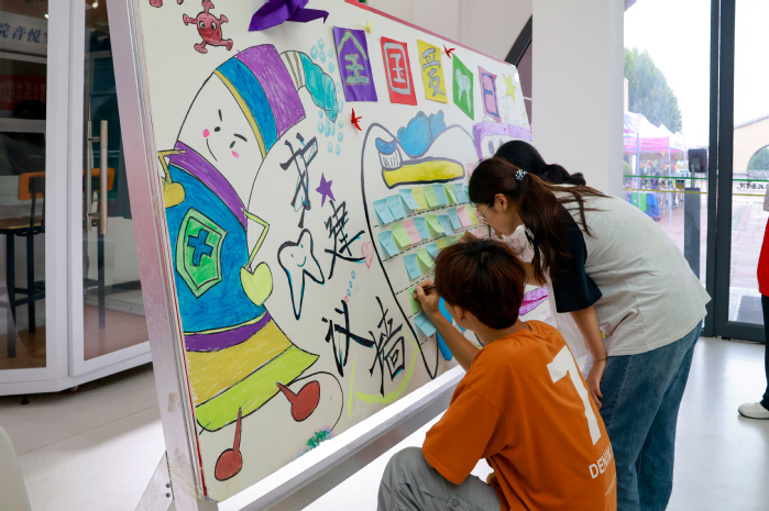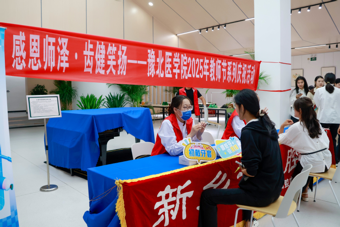 9月16日,由校工会主办、口腔技术学院工会与仁智书院工会联合承办的“感恩师泽·齿健笑扬”教师节庆祝活动暨第37个“全国爱牙日”主题活动圆满落幕。校党委副书记杨国平、副院长马波莅临现场指导,与师生亲切互动。 本次活动创新融合尊师重教传统美德与口腔健康科普教育,以“提升师生健康素养、营造校园护牙氛围”为核心目标,力求通过师生群体将口腔健康知识辐射至家庭与社会,助力推进“口腔健康、全身健康”的社会新风尚,是学校践行“健康中国”战略、服务师生健康的具体实践。 科普讲座进校园——重塑认知,掌握科学护牙方法 当日中午,口腔健康科普讲座在行政楼学术报告厅开讲。口腔技术学院禹璐、李志欣两位老师围绕“口腔健康是全身健康门户”的核心理念,深入剖析糖分对口腔健康的危害,详细传授“主动护牙、科学控糖”的实用技巧。讲座现场互动频繁,有奖问答环节气氛热烈,参与者不仅收获了专业知识,还获赠牙线、漱口水等护牙礼品,有效引导青年学子树立科学的口腔健康观念。 爱心义诊暖人心——全周期关怀,守护师生口腔健康 当日下午,爱心义诊活动在仁智书院功能厅正式开展。活动特邀新乡市口腔医院口腔内科、修复科专家坐诊,为全校教职工、家属及在校学生提供免费口腔检查与专业咨询服务。专家们耐心解答师生疑问,细致排查口腔问题,并现场发放牙周洁治卡与优惠就诊卡。同时,活动设置趣味套圈游戏,将健康福利与欢乐互动结合,让师生在轻松氛围中深化对口腔健康重要性的认知,切实落实“从‘齿’开始幸福人生”的全生命周期关怀。