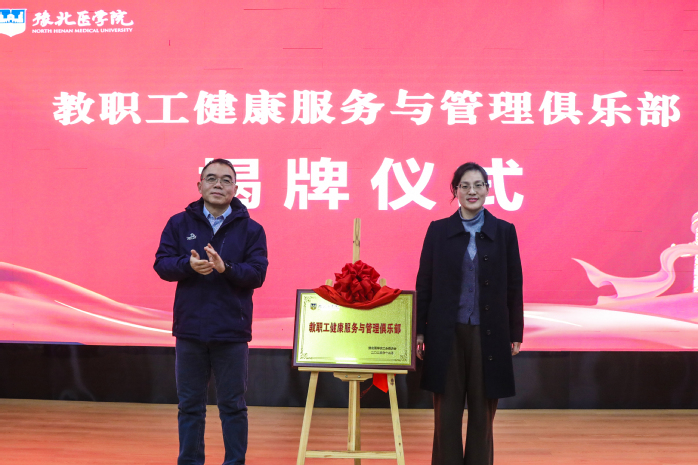 随后,大会举行教职工健康服务与管理俱乐部揭牌仪式。杨国平与该俱乐部负责人姬丽娟共同为俱乐部揭牌,标志着我校聚焦教职工全周期身心健康保障、彰显医学院专业特色的专属服务平台正式启航。姬丽娟作表态发言时表示,俱乐部将立足健康管理学院专业优势,坚守“科学管理、精准服务、普惠健康、呵护生命”核心宗旨,为全校教职工提供系统化健康知识宣讲、专业化健康检测评估、个性化健康咨询指导及特色化健康主题活动,全力当好教职工身心健康的坚实守护者、幸福生活的贴心服务者。